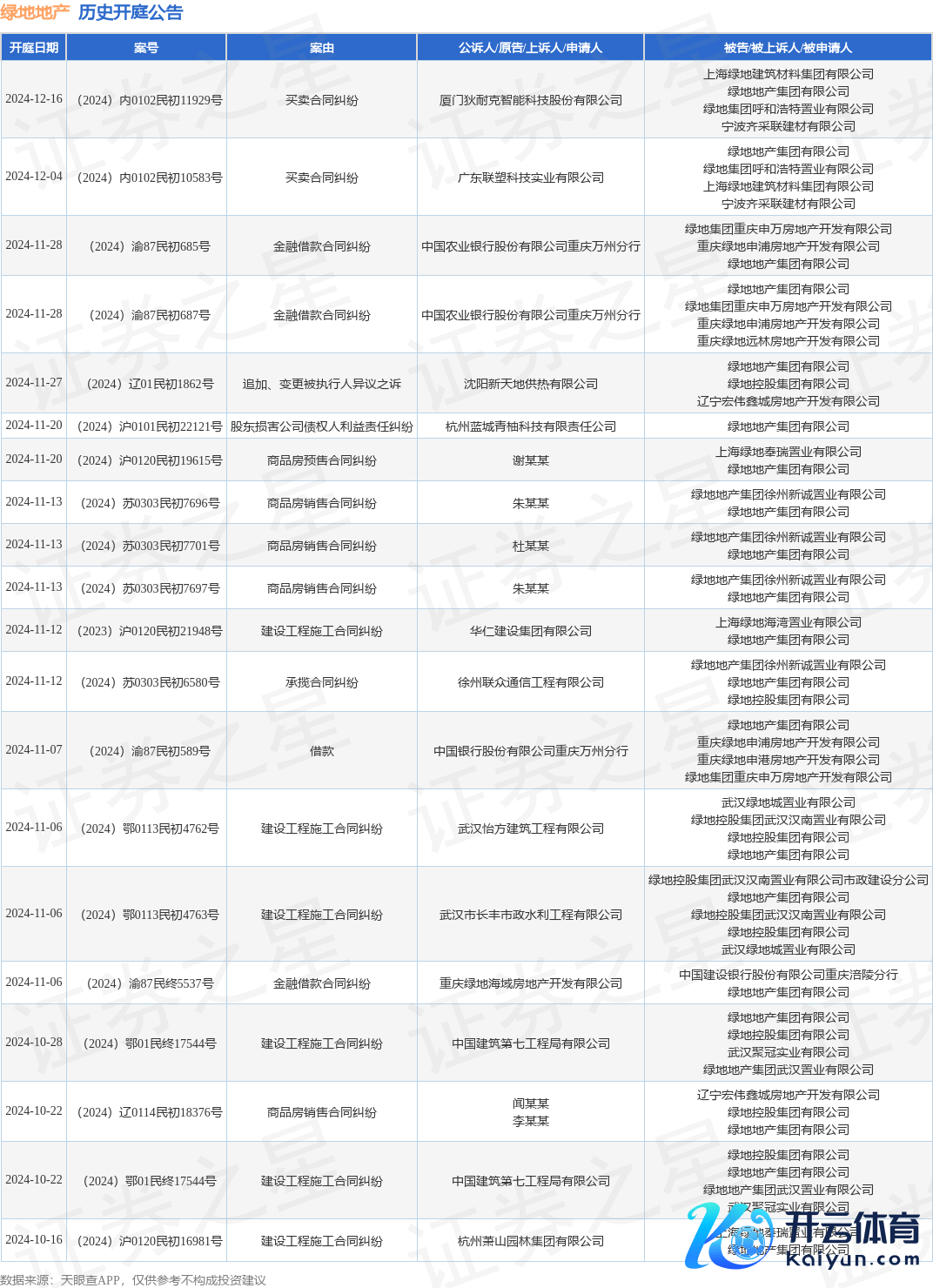 本站音讯,阐明天眼查APP涌现,近日公布了一则绿地地产集团有限公司手脚被告/被上诉东谈主的开庭公告,刺目本体如下: