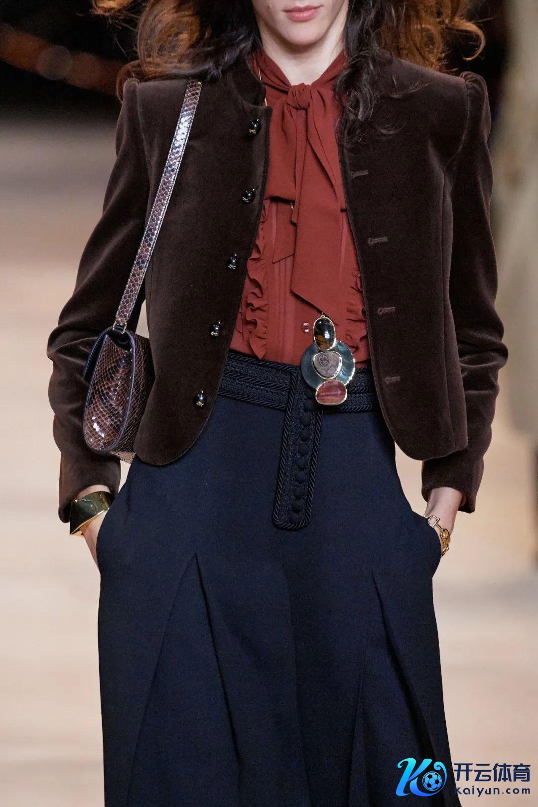 缜密称身的短西装,收腰A型半身裙,高筒靴,充满闲情逸致的飘带衬衫,大致一条有品位的丝巾和项链,表率的布尔乔亚立场离不开这几件单品,不错说这几件单品是其精髓。