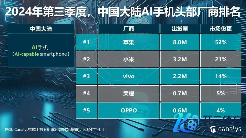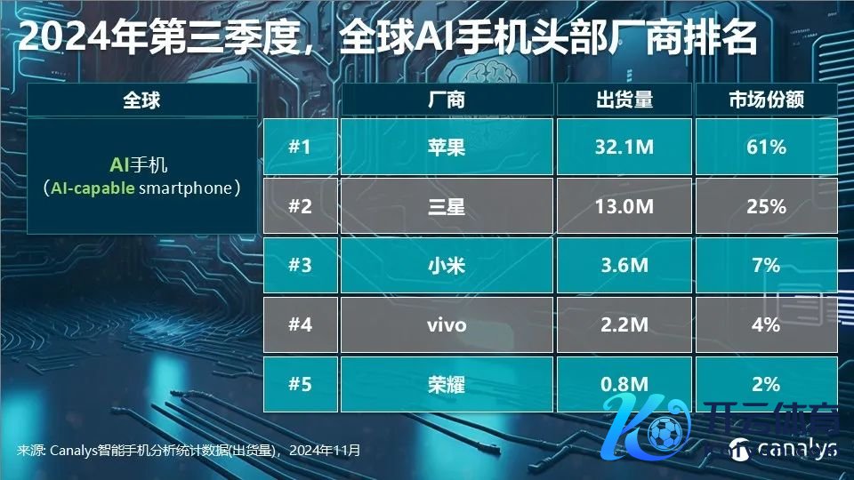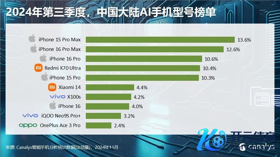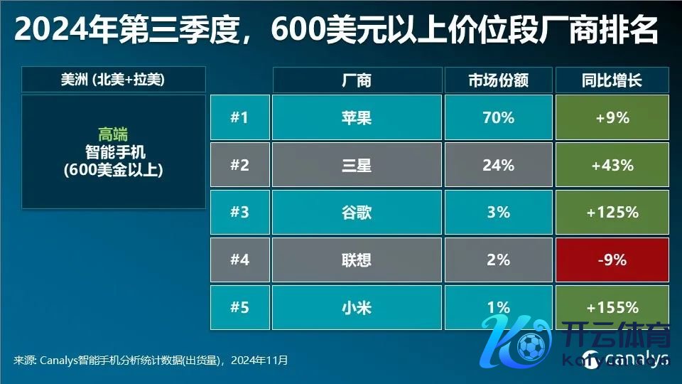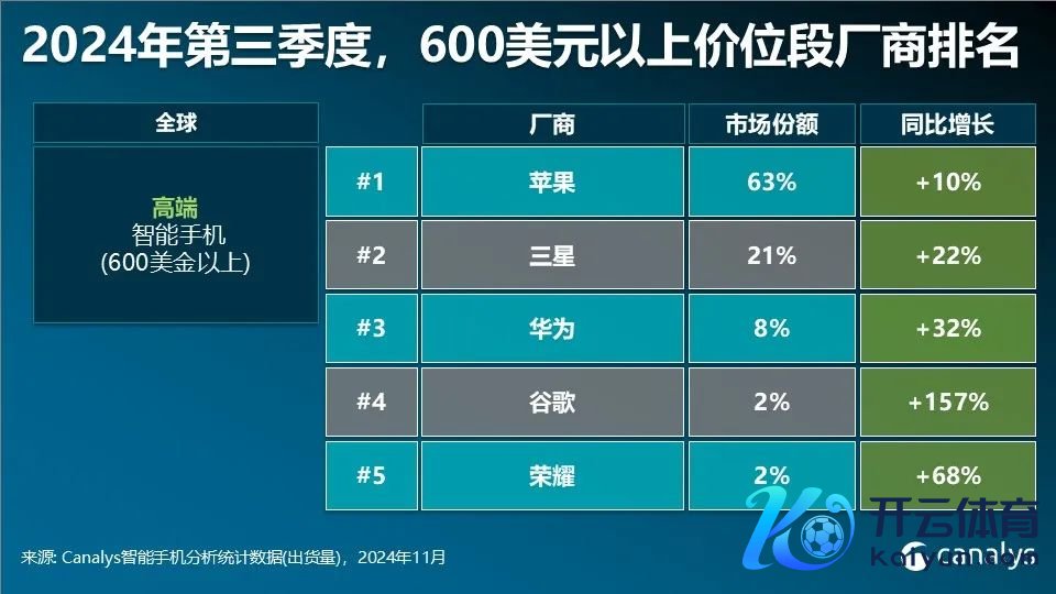 高端手机阛阓需求保执重生,三季度行家600好意思元以上价位段出货量同比增长15%,厂商AI手机新品进一步激发破费者祥和。苹果(AAPL.US)在季度末发布的iPhone 16系列全系标配Apple Intelligence功能,展现了其关于生成式AI界限的政策贪心,并在三季度同比增长10%,以63%的份额居于高端阛阓榜首。三星收获于Galaxy Z系列折叠屏新机的发布,况且首代AI旗舰S24系列需求执续性相较前代有所提高,出货同比增长22%,以21%的阛阓份额位居第二。华为通过首款三折叠机型Mate XT的发布进一步强化了其期间接头者的形象,况且Pura 70系列在发布第二季度后热度得以延续,同比增长32%,以8%的行家阛阓份额位列第三。谷歌(GOOGL.US)发布其全新的Pixel 9系列旗舰,并进一步彭胀其SKU,同比增长157%,出货量位居第四。荣耀的旗舰机型出海取得优异弘扬,为其高端孝敬增量,同比增长68%,位列第五。