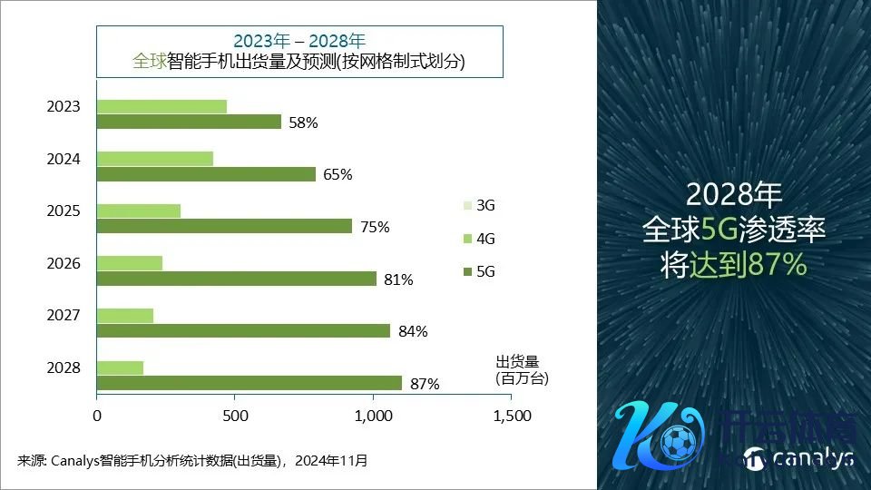 智妙手机阛阓5G浸透仍在执续,低端5G机型正在印度等5G基建较完善的发展中阛阓取得嗜好。预测2024年5G智妙手机出货占比将达到65%,而到2028年这一数字将高涨至87%。