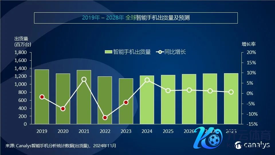 Canalys发文称,2024年第三季度,行家智妙手机阛阓同比增长5%,承接四个季度终了同比反弹。尽管本年上半年以来行家的经济景象有所复苏,破费者需求缓缓回暖,但过问下半年开动由于资本压力的高涨以及低端阛阓的强烈更加强烈,Canalys关于本年下半年的出货弘扬仍执严慎乐不雅的作风。2024年行家智妙手机出货量预测为12.2亿台,同比高涨6%。在资通书年的强势反弹后,长久来看,智妙手机阛阓的增长将从25年开动步入平台期,2024年至2028年的年复合增长率进一步下调至1%。