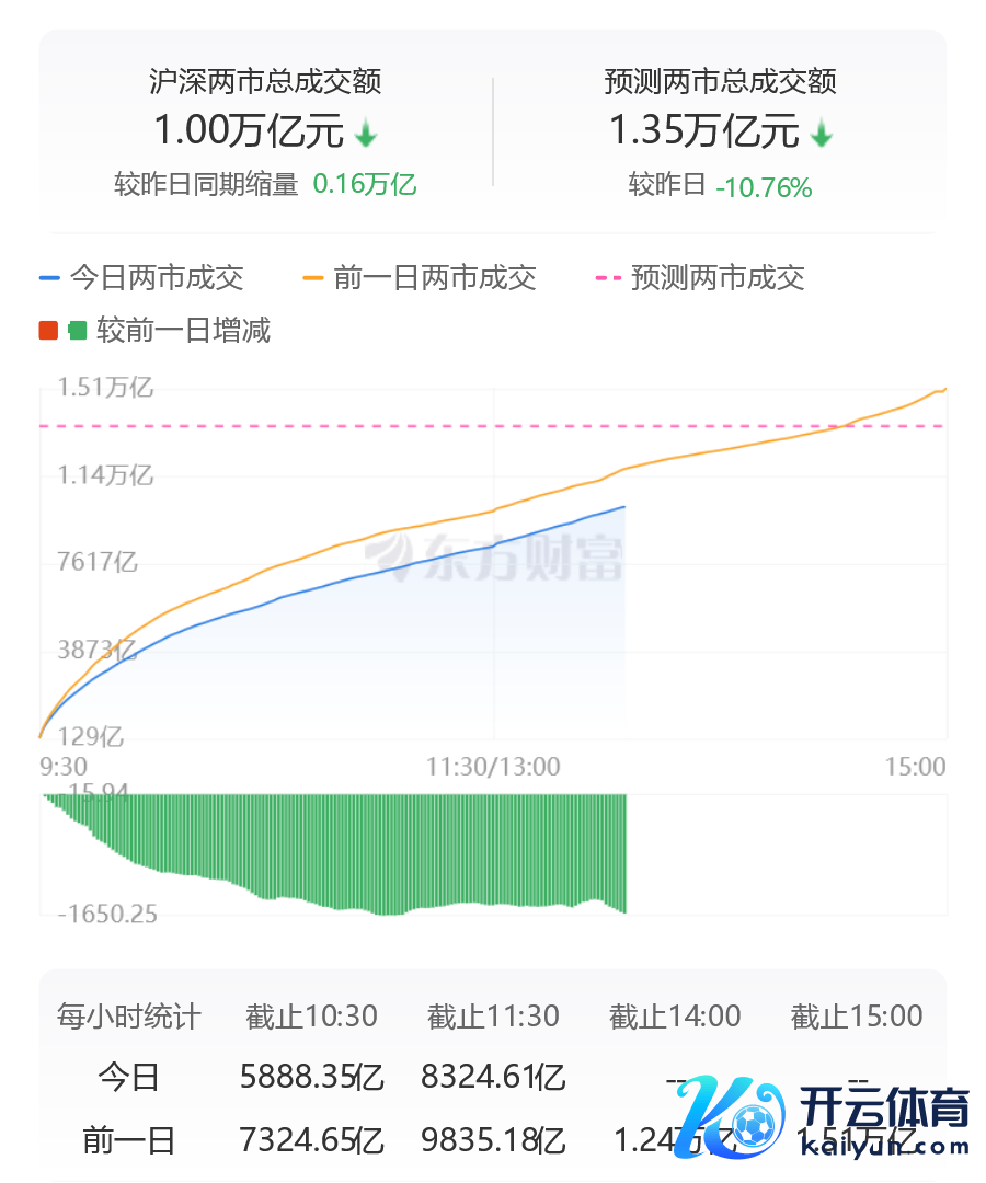 沪深两市成交额一语气第56个交游日冲突1万亿,较昨日此时缩量超1600亿。