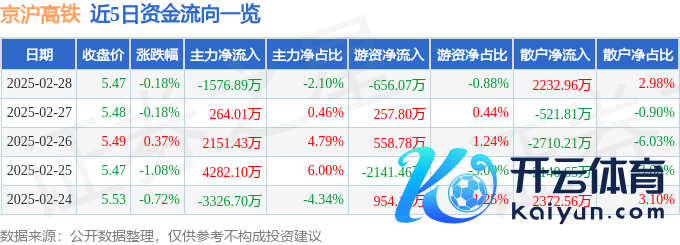 本站音问,收尾2025年2月28日收盘,京沪高铁(601816)报收于5.47元,下落0.18%,换手率0.28%欧洲杯体育,成交量136.2万手,成交额7.49亿元。