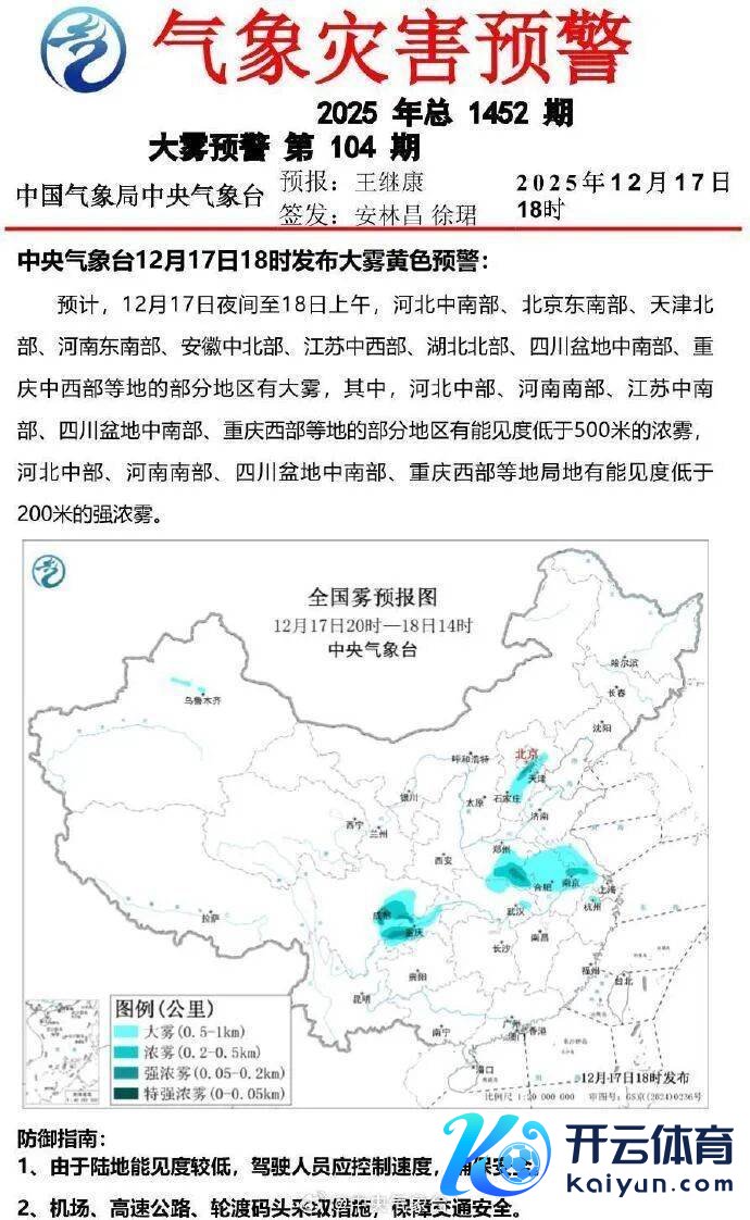 据中央快意台网站音信,中央快意台12月17日18时发布大雾黄色预警。