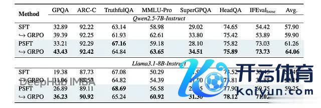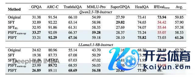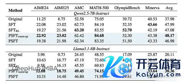更病笃的是域外性能。PSFT 锻练的模子在非数学任务上也发扬很好,说明它如实提高了泛化智商: