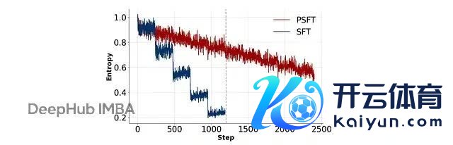在后续的强化学习锻练中,PSFT 锻练的模子保抓了更高的熵,说明探索智商取得了保留: