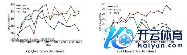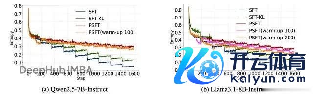 流露两个大谈话模子在锻练技能熵的图。SFT-KL 是一种利用 KL 刑事职守以保抓微调模子更接近预锻练模子漫步的步地。PSFT (warm-up) 是一种在切换到 PSFT 之前入手移时的运行 SFT 阶段的步地,用于锻练巩固性。