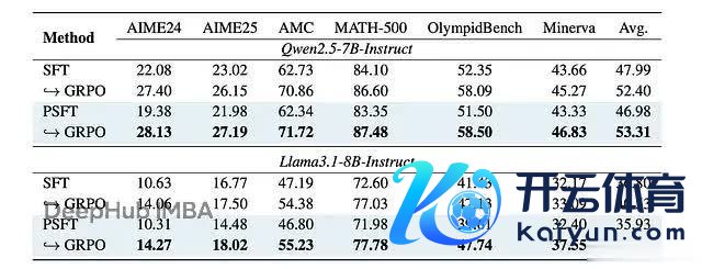 在域内数学任务上,PSFT 的发扬至少和圭臬 SFT 抓平,在某些情况下还更好:
