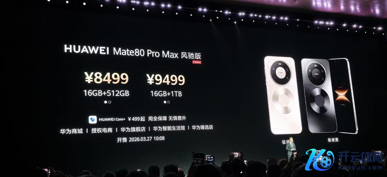 华为Mate 80 Pro Max风驰版至本日春季全场景新品发布会上亮相,该机型提供16GB+512GB与16GB+1TB双版块,订价差异为8499元和9499元欧洲杯体育,将于3月27日10:08郑重开售。