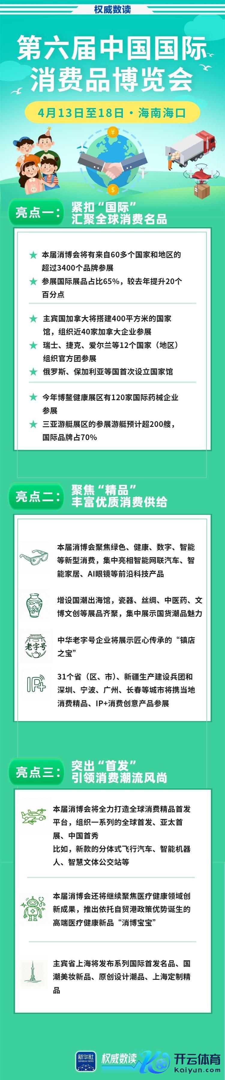 国新办30日举行发布会,先容第六届中国国外消耗品展览会干系情况。将于4月13日至18日在海南举办的本届消博会,既是“十五五”开局之年我国要紧展会的“首展”,亦然海南自贸港全岛封关运作以后的“首秀”。本届消博会有哪些亮点,追随海报尊龙体育网,一齐来看。