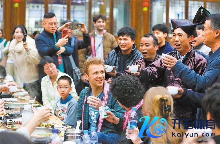 3月23日,旅客在肇兴侗寨体验长桌宴,感受侗族文化的专有魔力。本报记者 吴秉泽摄