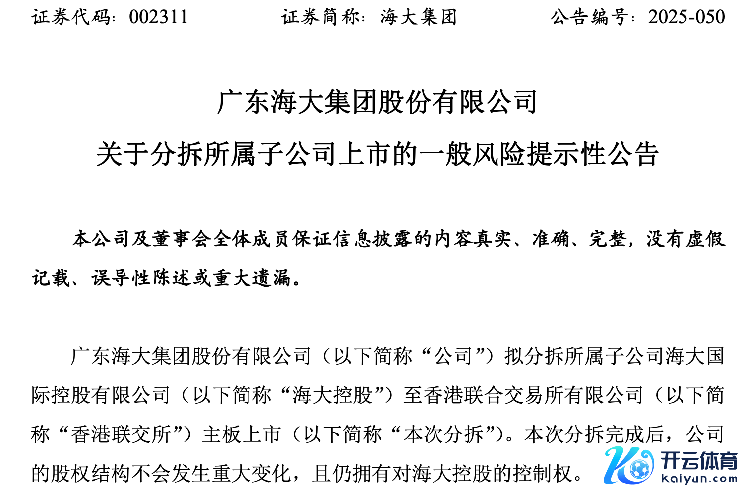 这次分拆完成后,公司的股权结构不会发生要紧变化,且仍领有对海大控股的范围权。